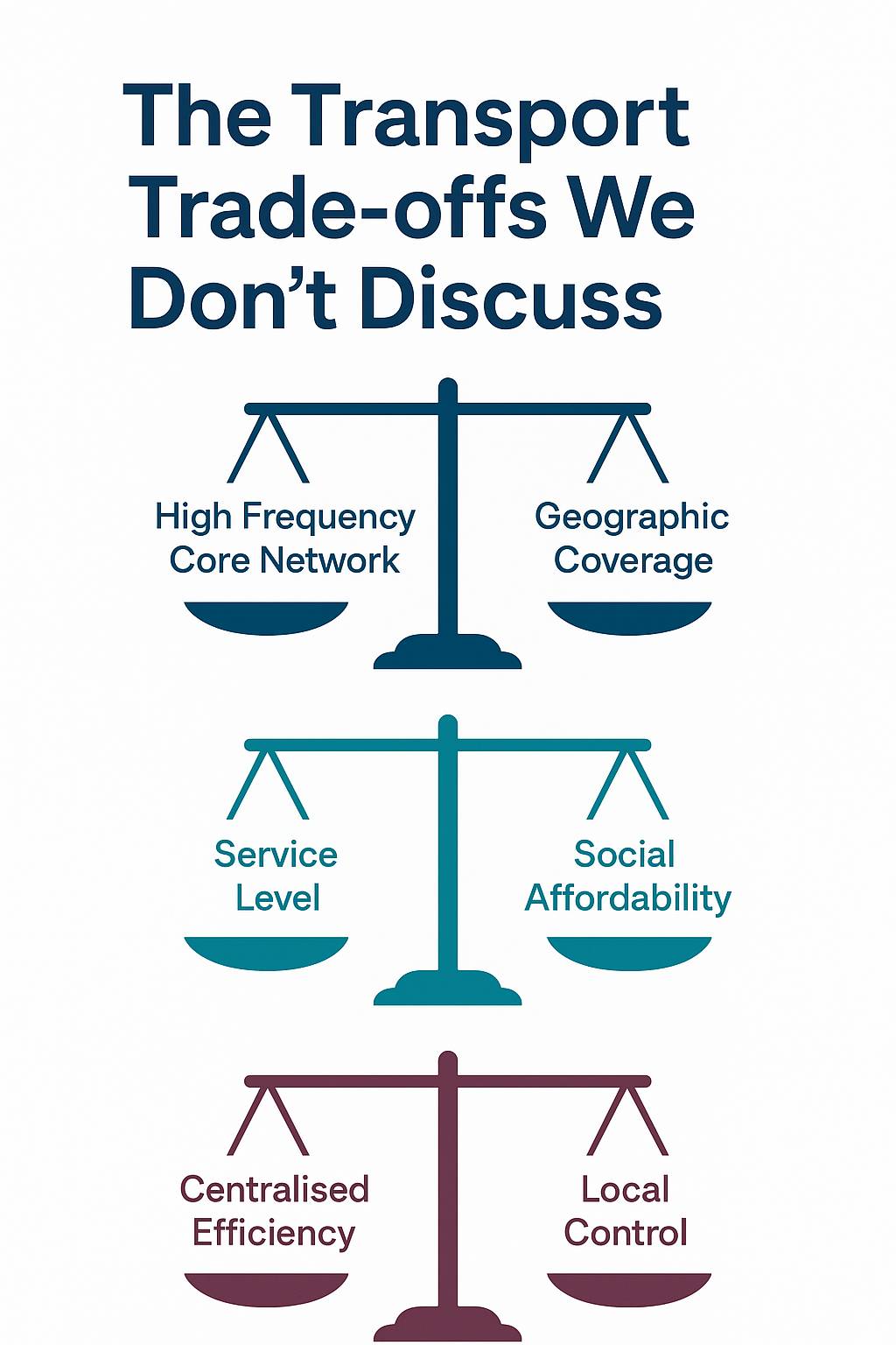 It is good to see the three dilemmas discussed in the report. These are trade-offs that are made every day in transport systems around the world, yet are rarely discussed. More transport strategies would benefit from thinking deeply about these trade-offs.