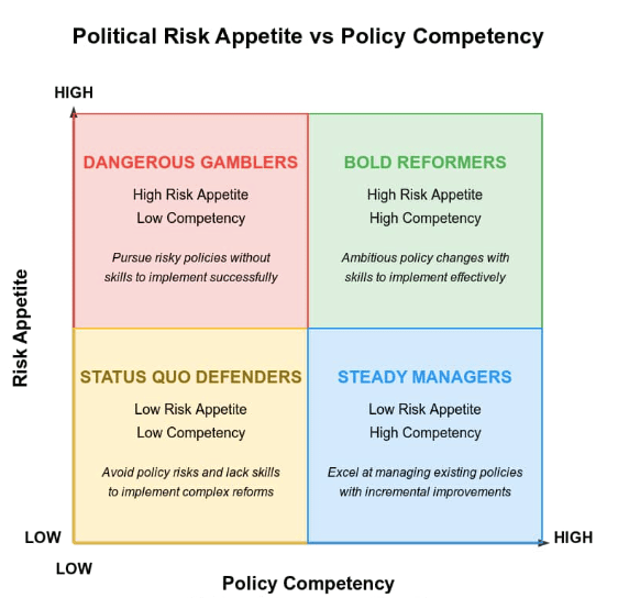 We can segment our political leaders based on their competency to undertake reforms and their attitude to reform risk.