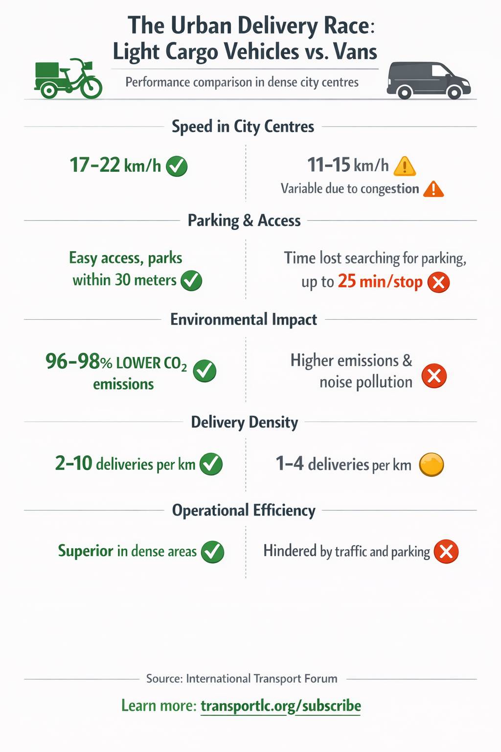 - Under the right conditions, light cargo vehicles can be a more efficient means of parcel delivery compared to vans and trucks.